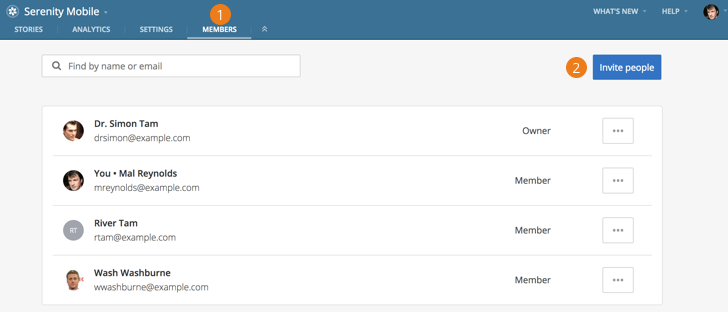 In the Find by name or email field, you can filter existing project and/or account members by name, username or email address.