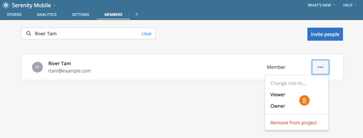 To the right of the appropriate member, click the member actions menu and select Remove from project from the drop-down.
