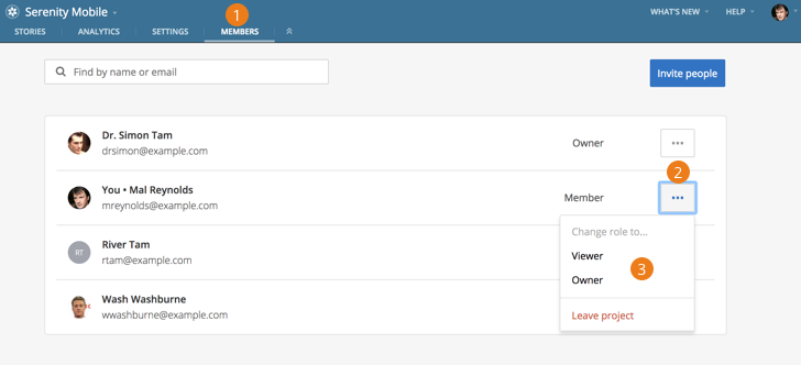 If you’re the owner of a project, you can change the project role for a member directly from the MEMBERS page.