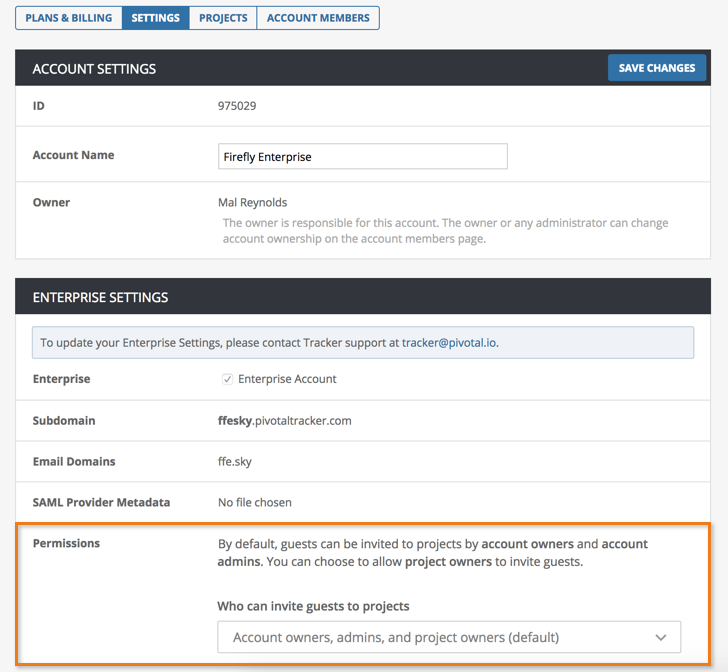 When you use Tracker Enterprise, everyone within your organization works in the same account and can automatically create projects there. They can’t create separate accounts or create projects in other accounts, so you can be sure all the work for your company is centrally owned and managed. We identify who’s in your organization based on the domain of their login - anyone who’s login contains the company owned domain is considered an account member and anyone who does not is considered an “external guest”.