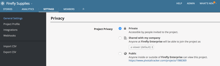 By default, projects in Tracker are set to be ‘private’ (only accessible by those who’ve been explicitly invited), however, Enterprise allows project owners to set their projects to be shared with other explicit members of their organization. Explicit account members (see more in the note below) can then search for projects that have been set to be shared, and self-join them as either a viewer or a member. With organizational shared projects, owners no longer have to worry about managing access, and can simply provide a list of project names to a user so they can self join them as needed.