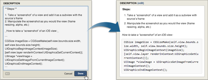 The following overview will introduce you to some of the most commonly used Markdown Syntax, which can be used in story descriptions, comments, tasks, blockers and titles (though some fields offer limited support, see Where you can use Markdown).