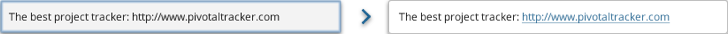 Tracker automatically links URLs beginning with http:// or https://. This differs from Standard Markdown, which requires distinct tagging for URLs.
