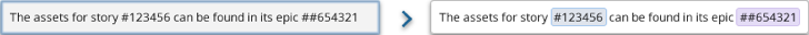 Tracker also supports hyperlinking of stories and epics by IDs. Story IDs prefixed with # (e.g., #12345) will link to that story. Epic IDs prefixed with ## (e.g., ##54321) will link to that epic.