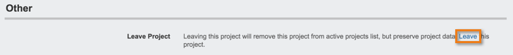 You can find the option to leave a project at the bottom of the Project Settings page.