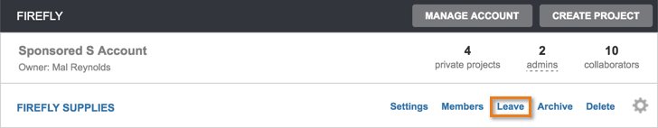 Alternatively, you can click Accounts under your username at the top right of the Tracker page, mouse over the project you no longer need to work with, then click Leave.