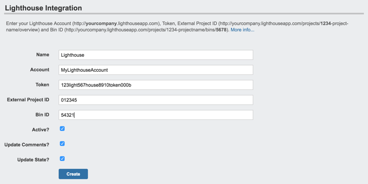 You’ll need to generate an API token in Lighthouse. We recommend you create a Lighthouse user specifically for the integration. You can generate and see tokens on your Lighthouse user page.