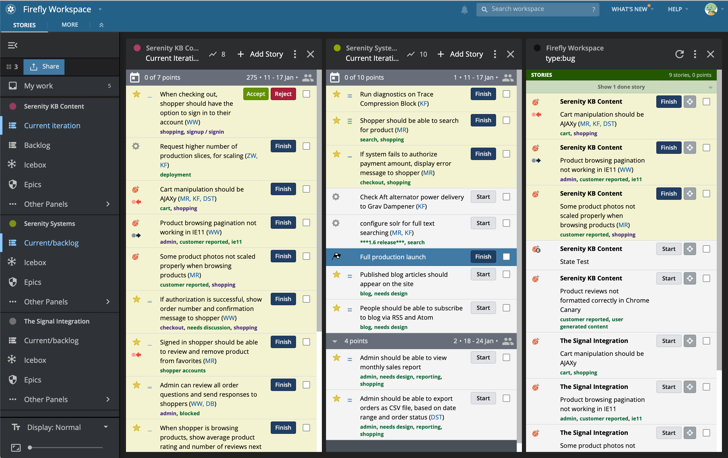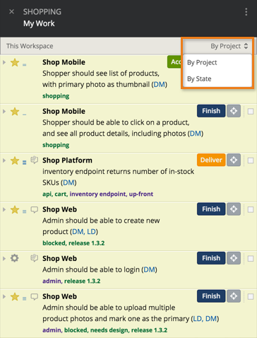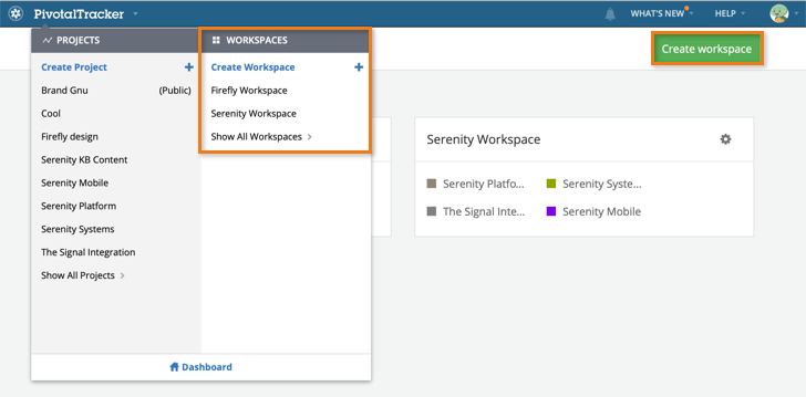 Tracker stories (including release markers) and epics are unique to a particular project. Workspaces let you work with stories and epics in different projects on the same page, and make related stories and releases more visible.