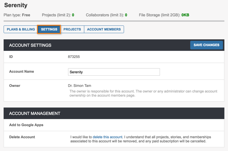 - By default, you’ll be taken to the Plans & Billing page, but you’ll also see menu options for Settings, Projects and Account Members; located just above the listed plans.