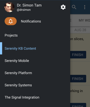 When you sign into the app, you’ll see all your projects listed on the left. Notifications are also on the left, above the list of projects.