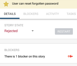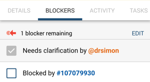 You can view and manage blockers in the Android App. Stories with unresolved blockers show a red blocker icon in the story card.