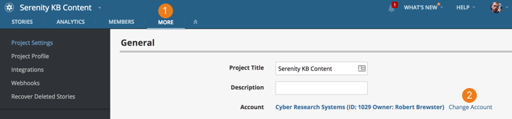 • Choose the account to move the project to, and click Save.