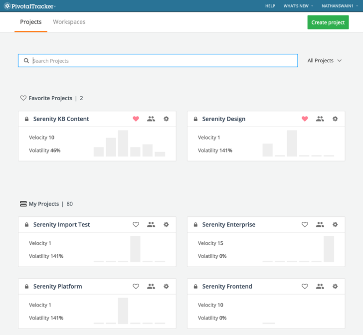 The Dashboard defaults to show all of your projects; however, click Workspaces at the top of the page to view and manage all of your Workspaces.