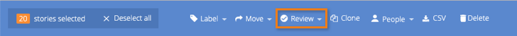 To add reviews and reviewers (optional) to the selected stories, click the Review button in the Bulk Actions menu.