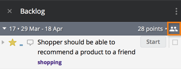To change team strength for an iteration, click on the Team Strength icon in the iteration header.
