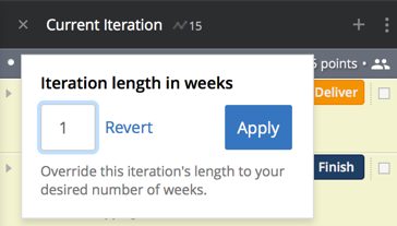 This is the length of your iterations in weeks. All new projects default to one-week iterations; however, you can choose anywhere between one and four weeks.