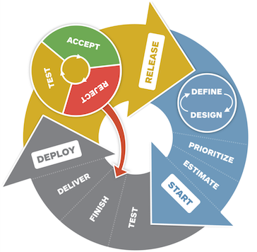 - Accept or reject stories. The customer/PM/PO, possibly in collaboration with testers, designers, and other team members, verifies whether acceptance criteria have been met, and accepts or rejects the story, completing the feedback loop. The accepted story turns green and moves to the top of the current iteration.